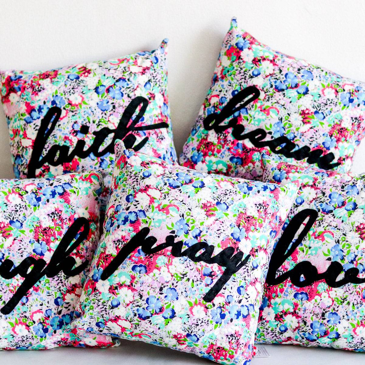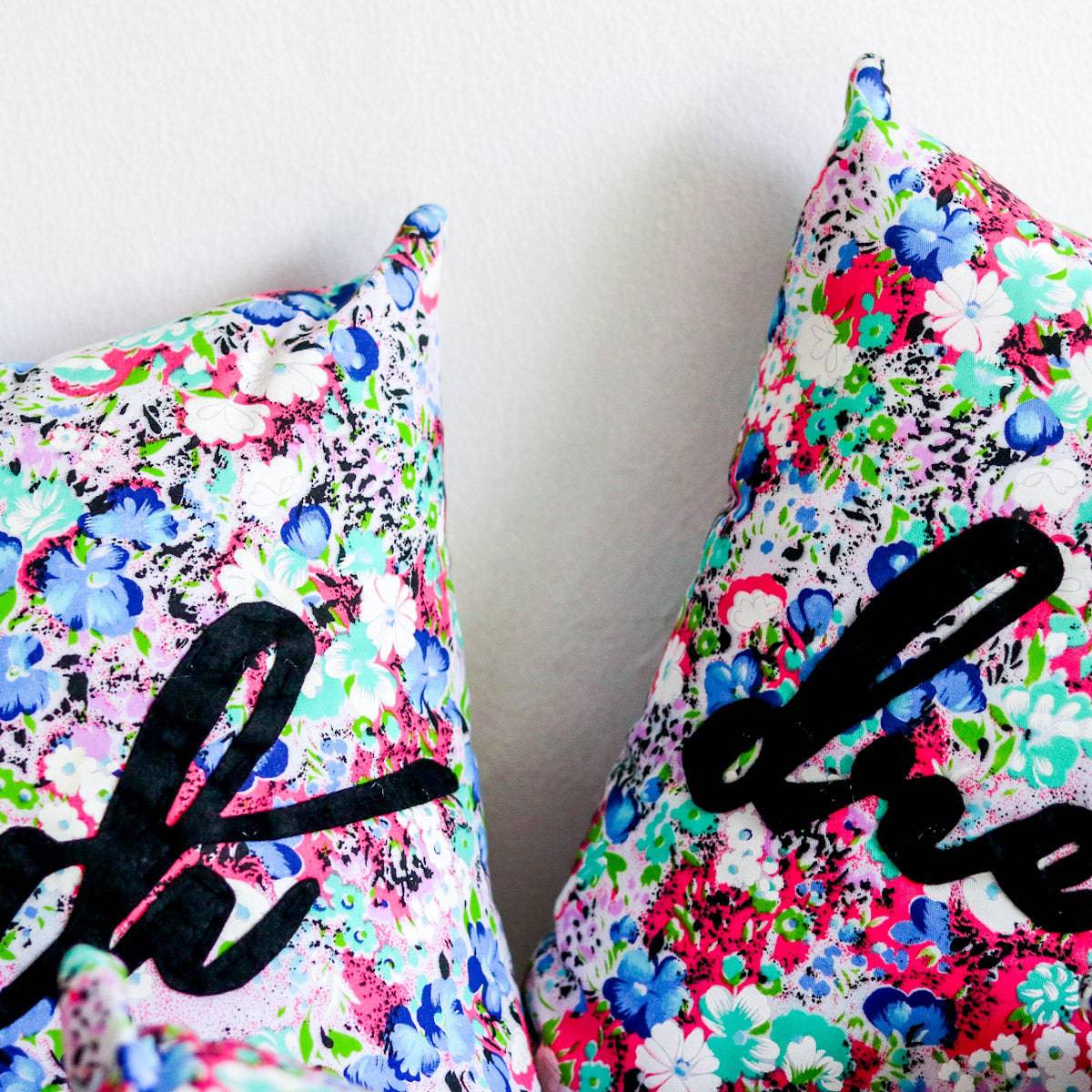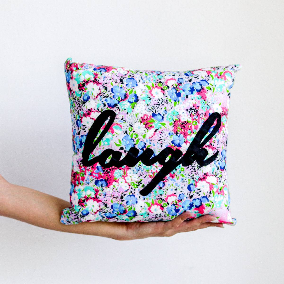 Let these fluffy pillows be your daily source of good vibes! Other patterns available here! Size is approximately 12 x 12in.